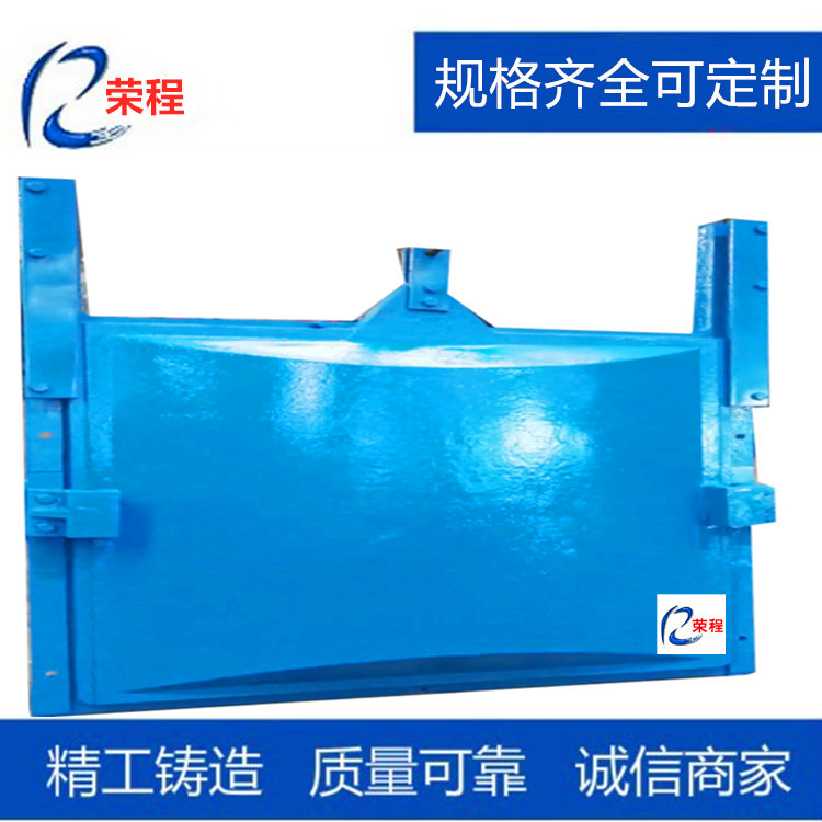 鑄鐵閘門的工作原理:閘板是直接承受水壓力的擋水構件, 閘框是閘板四周的支承構件, 同時也是閘板上下運動的滑道, 滑道以外部分鑲嵌于閘墩及閘底的二期混凝土中, 將閘板所承受的水壓力均勻地傳遞到閘墩及閘室底部。閘框迎水面四周與閘板框四周背水面接觸處經機械精制, 加工刨光后平直光滑、 貼合嚴密, 使結合面、 止水面與運動滑道合三為一。在啟閉機作用下, 當閘門啟閉運行時, 緊閉斜鐵和閘框滑道確保閘門的縱橫運行軌跡, 在水壓力和緊閉斜鐵的雙重作用下, 確保閘板運行平穩 , 使閘板與閘框滑道緊密貼合, 從而達到有效止水的目的。