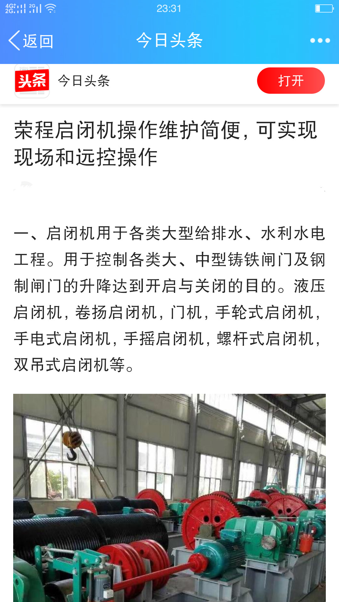 榮程水利卷揚啟閉機上今日頭條啦