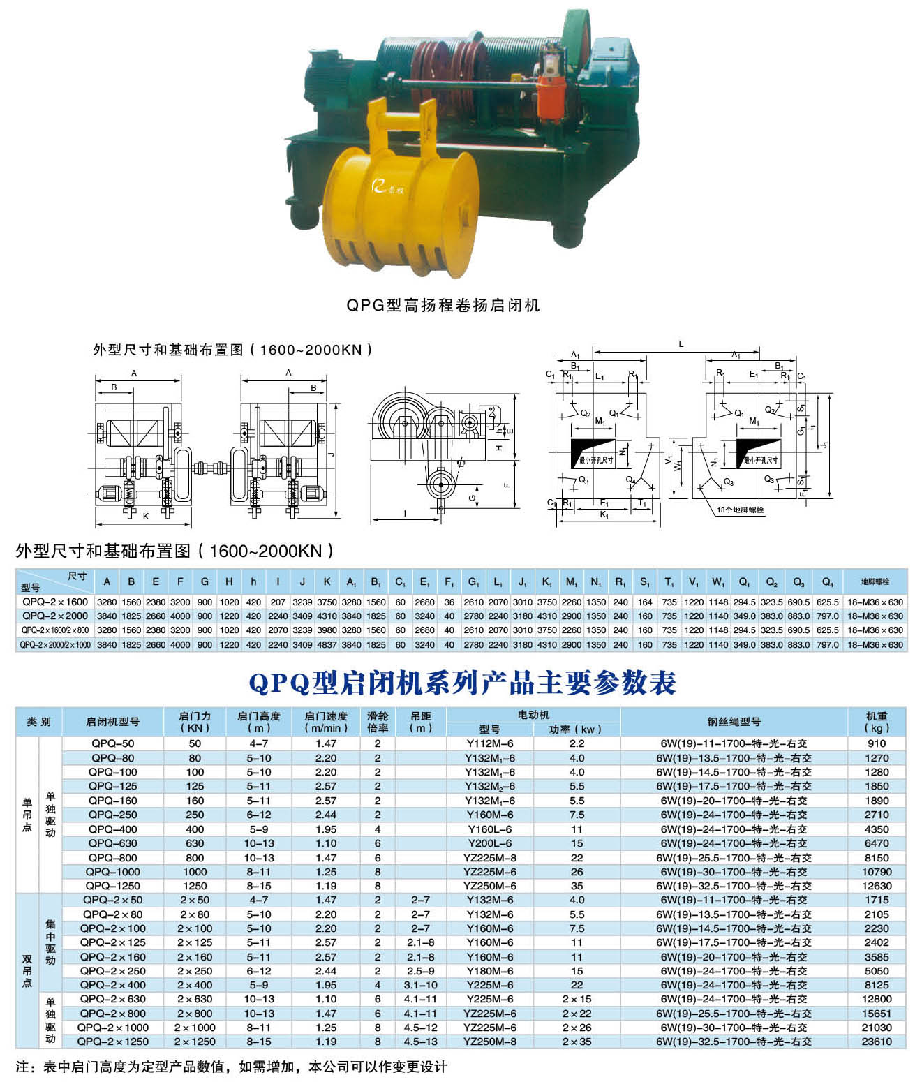 QPG型高揚程卷揚啟閉機結構特點: