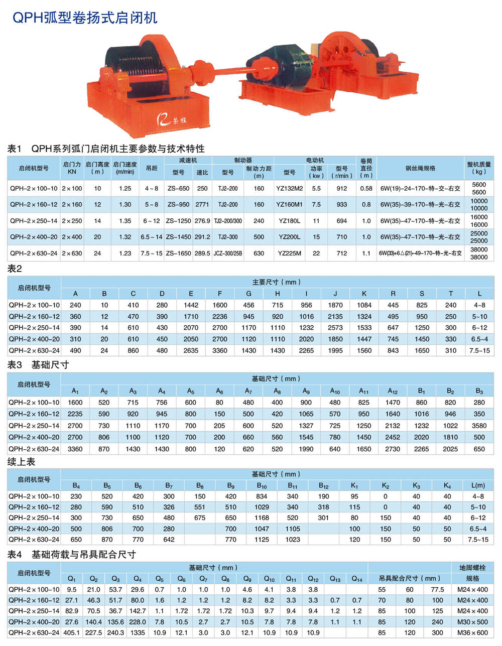新河縣榮程水利機(jī)械廠卷揚(yáng)啟閉機(jī)有多種型號:可以分為QPQ型普通卷揚(yáng)啟閉機(jī)、QPK型快速卷揚(yáng)啟閉機(jī)、QPG型高揚(yáng)程卷揚(yáng)啟閉機(jī)、QPT型臺車式卷揚(yáng)啟閉機(jī),QPM型門式卷揚(yáng)啟閉機(jī),QH型弧門卷揚(yáng)啟閉機(jī)。卷揚(yáng)啟閉機(jī)又分為:平門卷揚(yáng)式啟閉機(jī);弧形門卷揚(yáng)式啟閉機(jī);雙吊點(diǎn)卷揚(yáng)式啟閉機(jī);快速卷揚(yáng)式啟閉機(jī);移動式臺車啟閉機(jī);雙吊點(diǎn)卷揚(yáng)式啟閉機(jī)分為:集中驅(qū)動和單獨(dú)驅(qū)動兩種;卷揚(yáng)式啟閉機(jī)手搖、電動兩用式規(guī)格分為:5噸、8噸、12噸、16噸、25噸;電動式規(guī)格分為:40噸、63噸、80噸、100噸、125噸、160噸、200噸,可以根據(jù)用戶要求設(shè)計(jì),并能生產(chǎn)雙吊點(diǎn)卷揚(yáng)式啟閉機(jī),該機(jī)是一種水利工程專用機(jī)械,廣泛用于水利工程閘門的啟閉,是農(nóng)田灌溉、水產(chǎn)養(yǎng)殖、農(nóng)業(yè)經(jīng)濟(jì)開發(fā)區(qū)、污水處理廠、水利發(fā)電站、水庫(水閘、堤壩、隧道、管 道)等進(jìn)水、退水閘的配套機(jī)械,山區(qū)、平原有、無電地區(qū)均可使用。