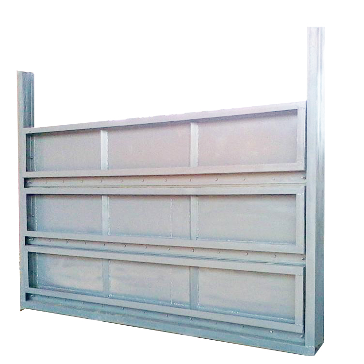 每塊閘板的高度一定,每塊的形狀都基本相同,每塊都有凸起和凹槽(或企口),凸起和凹槽內鑲有止水膠條,這樣可以一塊一塊疊放起來,達到需要的高度而基本不漏水或無明顯的漏水。每塊閘板上還設有兩個拉環,便于放下或取出。閘槽用鋼板折成[槽形,與渠道上預埋鋼板焊接安裝。依靠鋁合金疊梁閘上設置的彈簧和水壓的作用,止水橡膠受壓后與閘槽緊密貼合,止水效果良好。主要材質整體材質為鋁合金,鋼板的厚度與強度保證在運輸和安裝過程中,不受損,不變形,如有破損變形,予以可靠的修補。膠條嵌合牢固,長久使用也不脫落或斷裂老化。