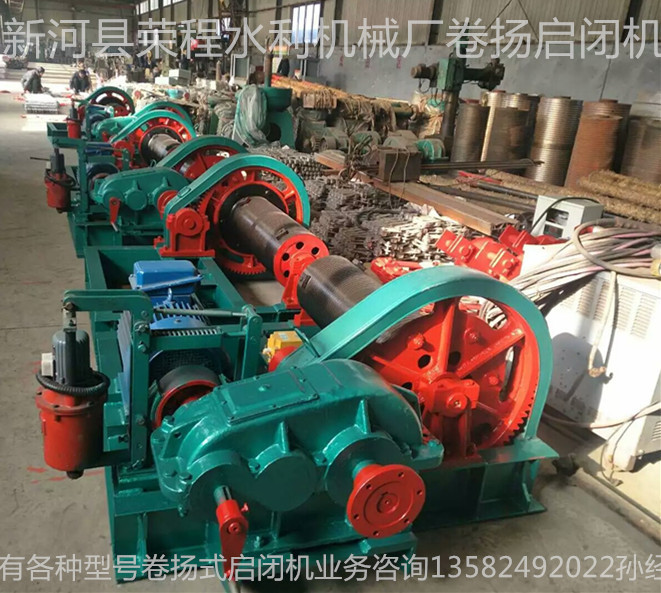 【卷揚啟閉機】生產廠家新河縣榮程水利機械專業生產銷售,卷揚啟閉機有4種規格型號:可以分為QPQ型普通卷揚啟閉機、QPK型快速卷揚啟閉機、QPG型高揚程卷揚啟閉機、QPT型臺車式卷揚啟閉機,QPM型門式卷揚啟閉機,QH型弧門卷揚啟閉機。卷揚啟閉機又分為:平門卷揚式啟閉機;弧形門卷揚式啟閉機;雙吊點卷揚式啟閉機;快速卷揚式啟閉機;移動式臺車啟閉機;雙吊點卷揚式啟閉機分為:集中驅動和單獨驅動兩種;卷揚式啟閉機手搖、電動兩用式規格分為:5噸、8噸、12噸、16噸、25噸;電動式規格分為:40噸、63噸、80噸、100噸、125噸、160噸、200噸,可以根據用戶要求設計,并能生產吊點和雙吊點卷揚式啟閉機。該機是一種水利工程專用機械,廣泛用于水利工程閘門的啟閉,是農田灌溉、水產養殖、農業經濟開發區、污水處理廠、水利發電站、水庫、水閘、堤壩、隧道、管 道等進水、退水閘的配套機械,山區、平原有、無電地區均可使用。