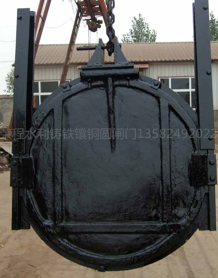 鑄鐵圓閘門是鑄鐵閘門中的一個(gè)規(guī)格。閘門有方形、圓形,扇形,拱形等。鑄鐵閘門一般由門葉和門框兩部分組成,門體和門框的材料采用鑄鐵,一般整體鑄造和加工。為保證止水效果,止水面可以加以鑲銅合金或不銹鋼等來增加其防腐能力。有特殊要求的地方還可以采用鎳鉻合金鑄鐵等耐腐蝕性更強(qiáng)的材料。根據(jù)客戶不同需要鑄造合適的閘門。