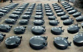 5、安裝混凝土澆注球拍門時,用支架固定鋼球拍門,并使中心線稍微向上邊緣1-2度,球拍門鉸鏈軸應放置到一定程度。澆注時,水泥和礫石不能進入球拍門蓋和鉸鏈軸。