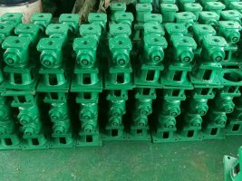 2、將手動螺桿啟閉機(jī)置于安裝位置。把一個(gè)限位盤套在螺桿上,將螺桿從橫梁的下部旋入機(jī)器中,當(dāng)螺桿從機(jī)器的上方露出后,再套上限位盤。螺桿的下方與閘門連接。