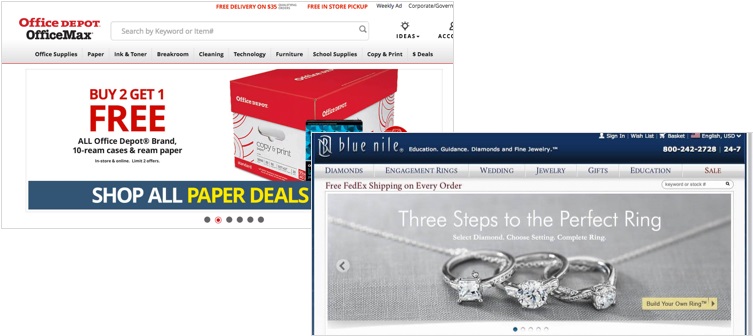 我們之前做的輪播圖可用性研究,發(fā)現(xiàn)大部分用戶會在輪播圖自動輪播完一個輪回前就跳到另一個頁面了,而在手動輪播圖網(wǎng)站里輪播圖只會停留在第一幀,除非用戶主動去找不然他們不會注意到那些有用的信息。所以,即使完善輪播圖的細節(jié)設計是一個很好的想法,但這并不能成為用戶獲取網(wǎng)站信息的唯一方式。